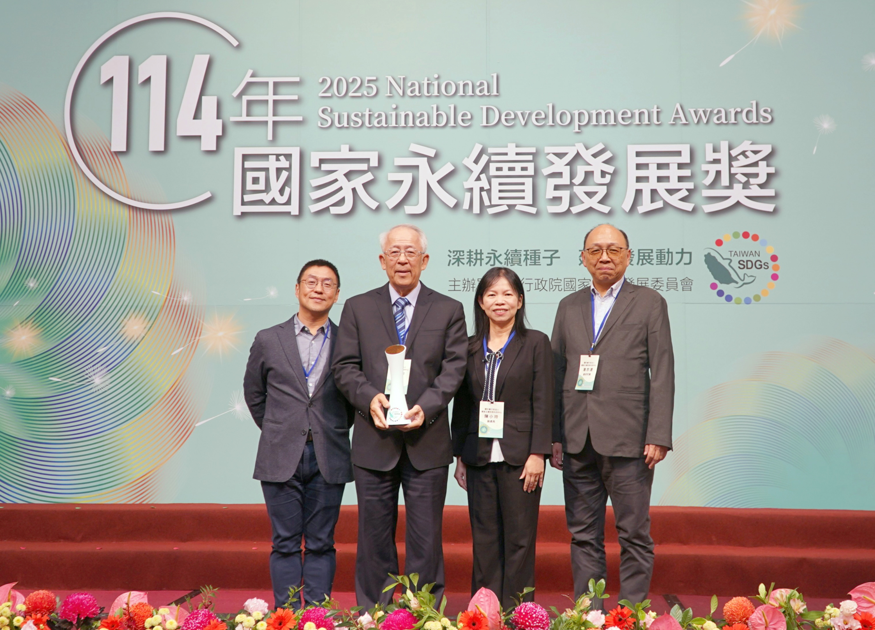 (TCCIP)支持下,建立起全方位跨域氣候變遷影響評估能量,為政策制定提供了具體的科學依據,並積極推動氣候變遷知識普及化,因此獲選「114年國家永續發展獎」。12月8日由行政院副院長鄭麗君於臺大國際會議中心頒發,當天由災防科技中心主任陳宏宇代表受獎。