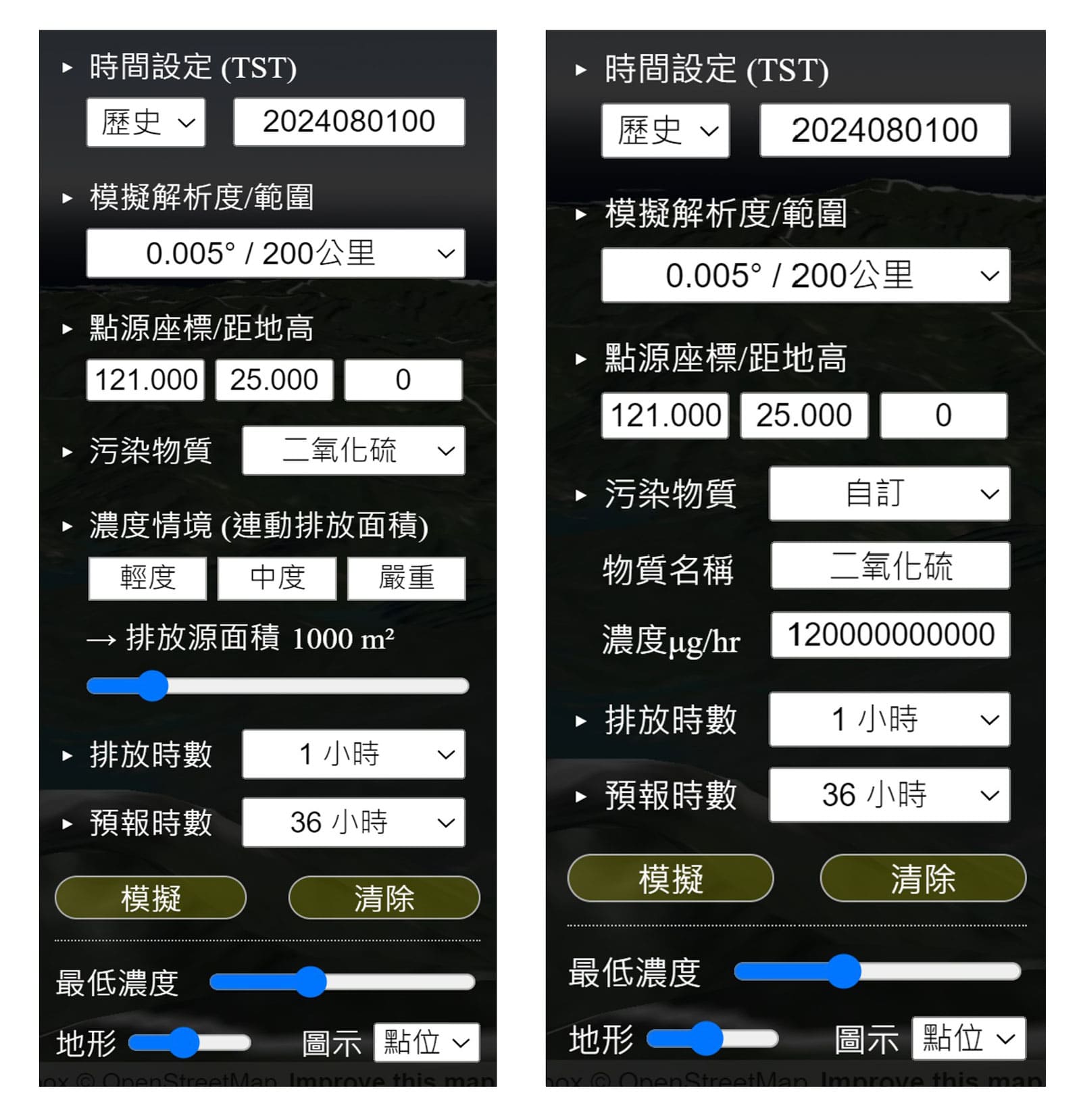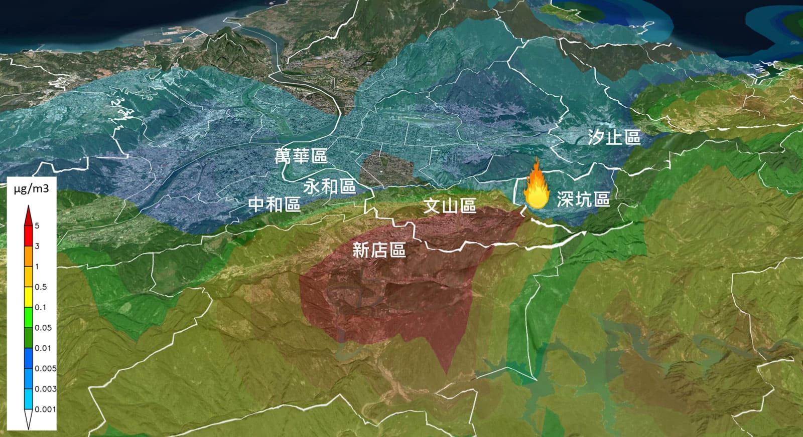 以2024年2月20日新北市深坑區的工廠火災事件為例,網站迅速計算出造成異味的二氧化硫擴散情況。這些模擬結果能幫助防災單位快速、準確地掌握污染物擴散情況,並及時通知受影響區域的居民,進行疏散或採取防護措施,保護民眾健康。